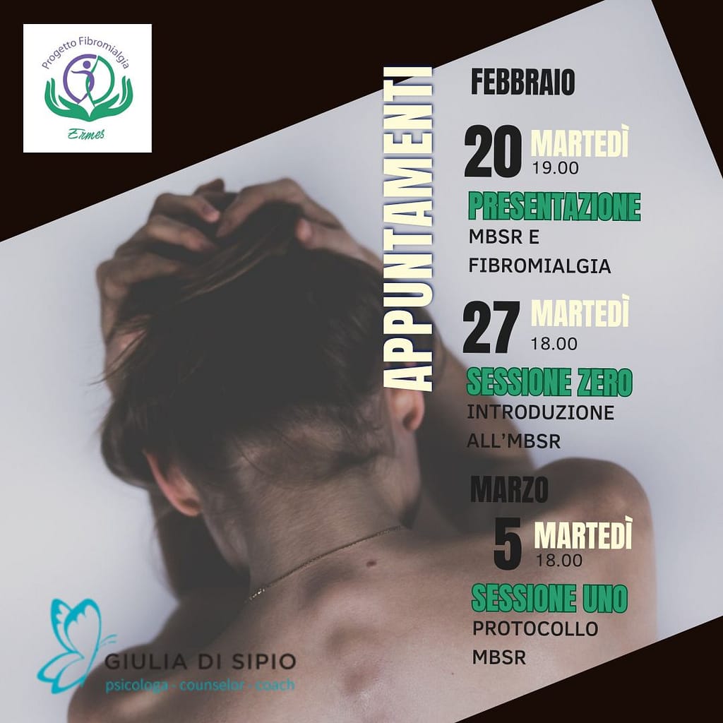 La Fibromialgia è una sindrome, un insieme di sintomi tra i quali spiccano il dolore cronico, l’affaticamento, la difficoltà a riposare, un umore che tende ad avere frequenti picchi. Convivere con una simile diagnosi non è facile, né scontato. C’è bisogno di aiuto, supporto e professionisti con i quali collaborare. La mindfulness e, nello specifico, il protocollo MBSR, offre come opportunità di lavorare, comodamente da casa, attraverso la piattaforma ZOOM, sulle proprie modalità reattive quotidiane, sulla gestione dello stress e sulle risorse che si hanno a disposizione.