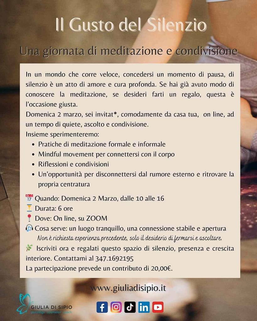 IL GUSTO DEL SILENZIO – 🧘♀️ Ritiro di meditazione online – 6 ore di presenza e consapevolezza