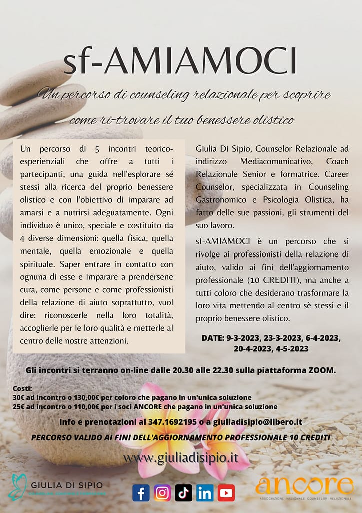 Il percorso è valido 16 crediti ai fini dell’aggiornamento professionale per Counselor e Coach Relazionali.
